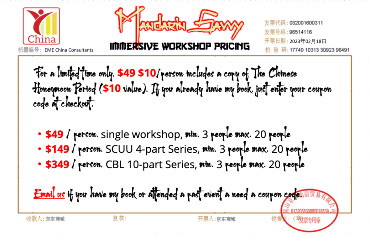 “I have a Master’s in International Management, I’ve taken ‘Doing Business in [fill in the country]’ classes through work, and I learned more in The Chinese Honeymoon Period than in all those classes combined.